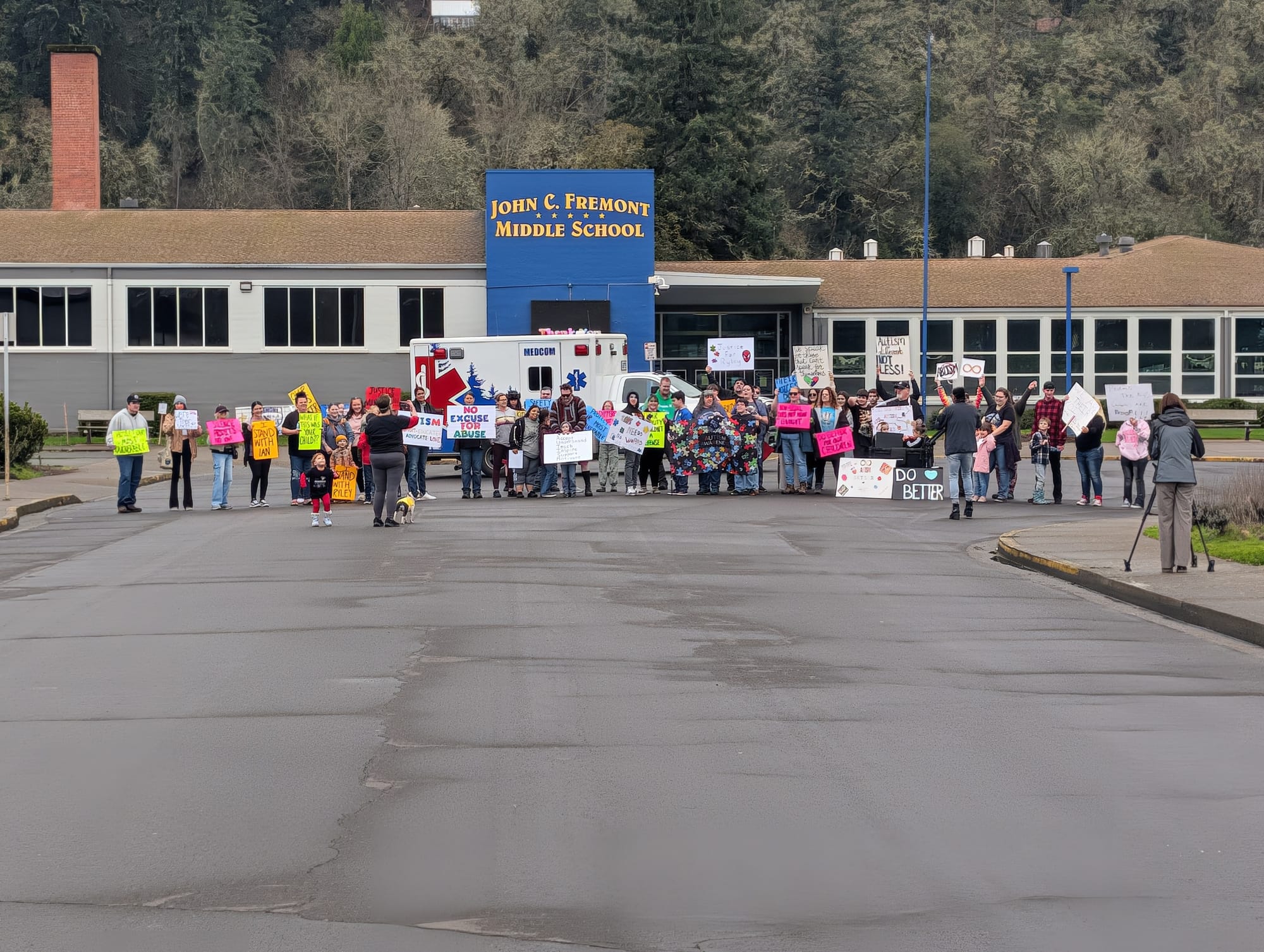 Organizers said the walk was planned in response to injuries reported among students in the school’s Developmental Learning Center. More than 50 people took part, walking from Fir Grove Park to Fremont Middle School.