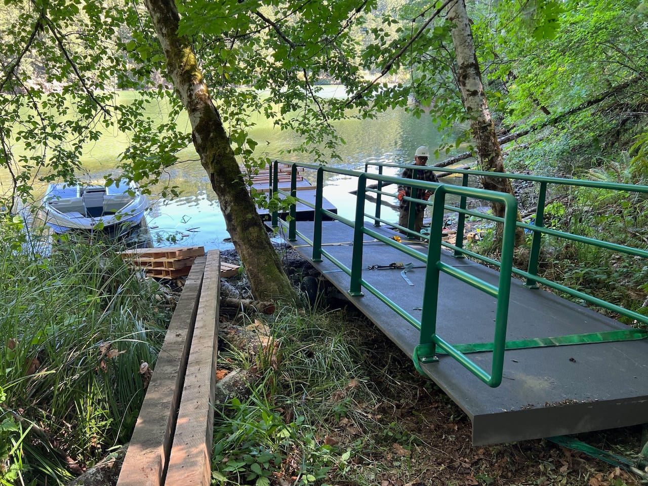 SUTHERLIN, OR – Last summer, mountain bike riders and other outdoor enthusiasts at Cooper Creek Reservoir outside of Sutherlin, Oregon, discovered a surprise: a brand-new bridge replacing an old, dilapidated wood bridge that was dangerously close to collapsing. Bikers and hikers could once again safely circumnavigate the lake on its nicely maintained 6-mile path.