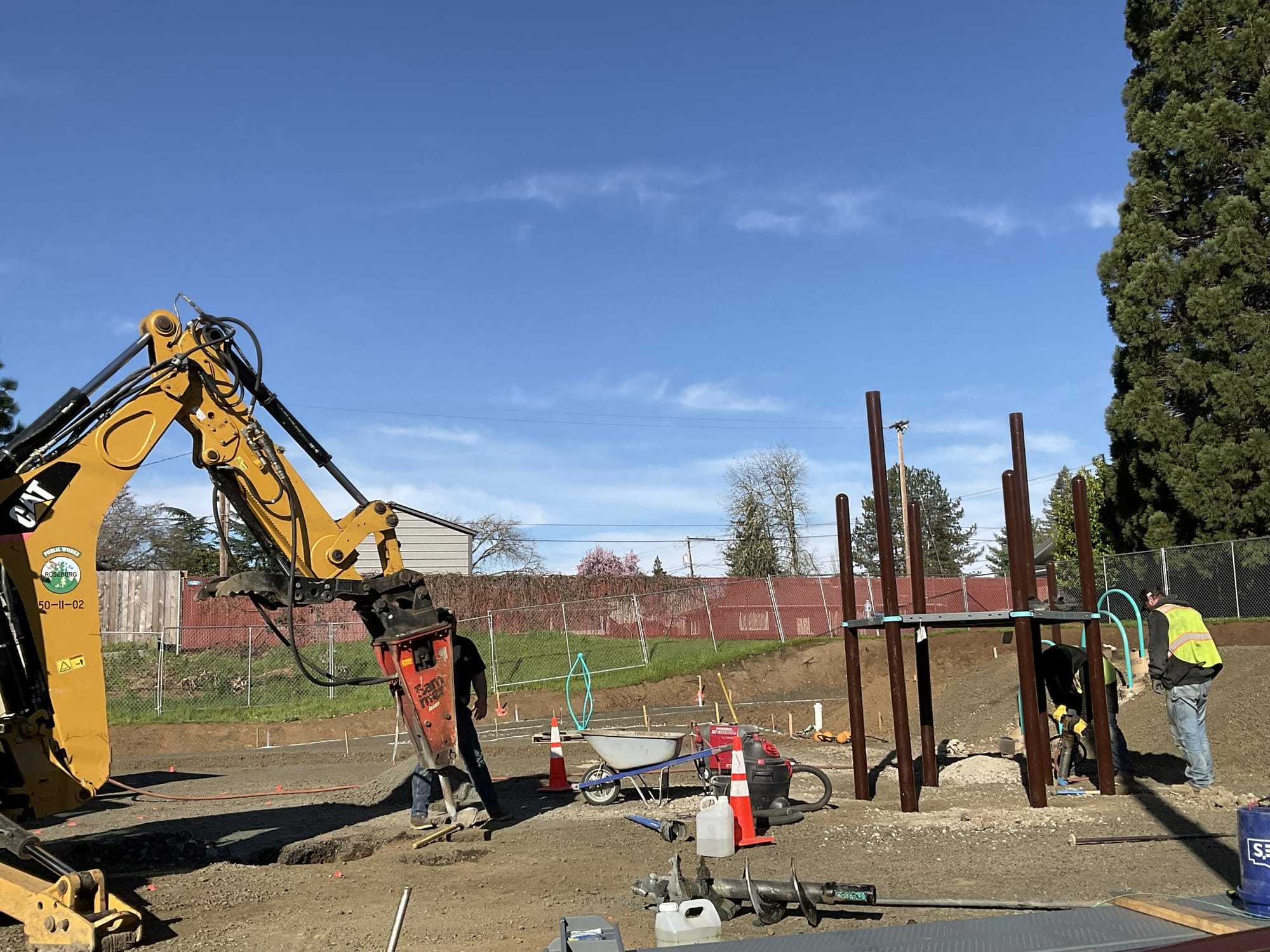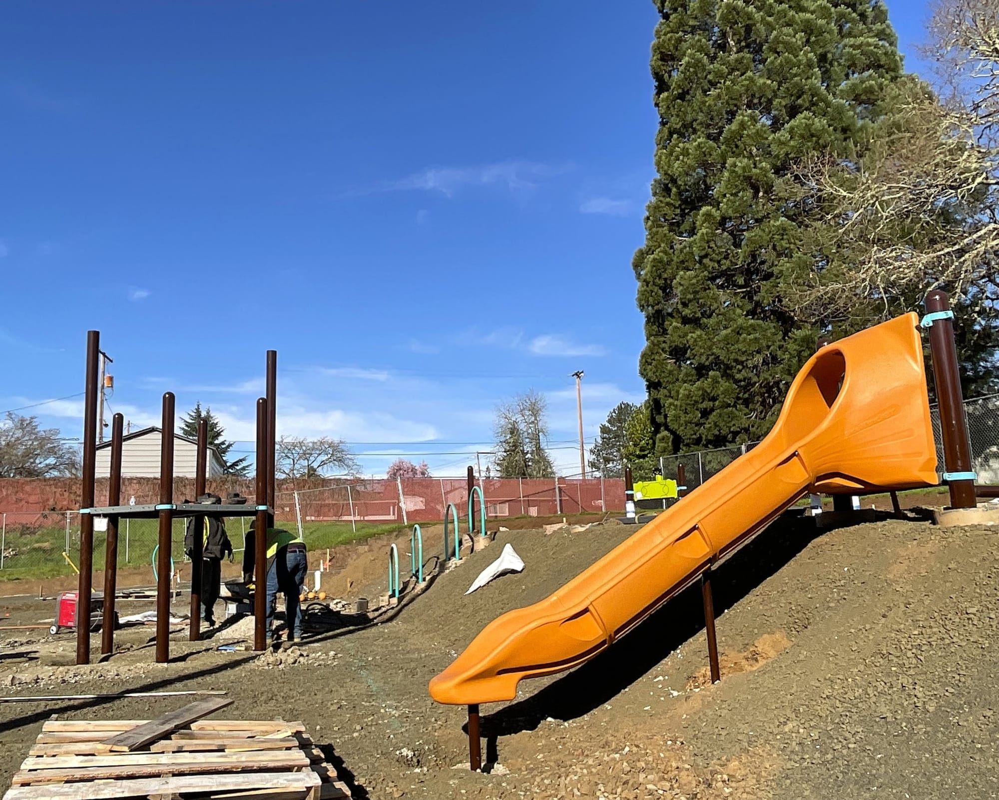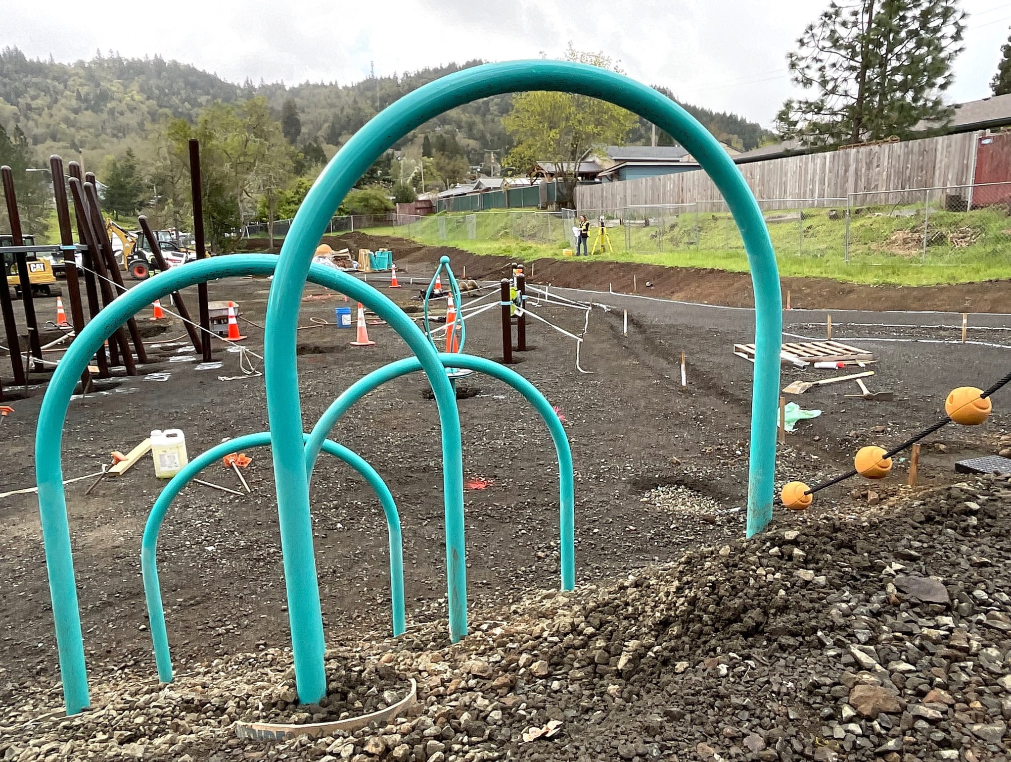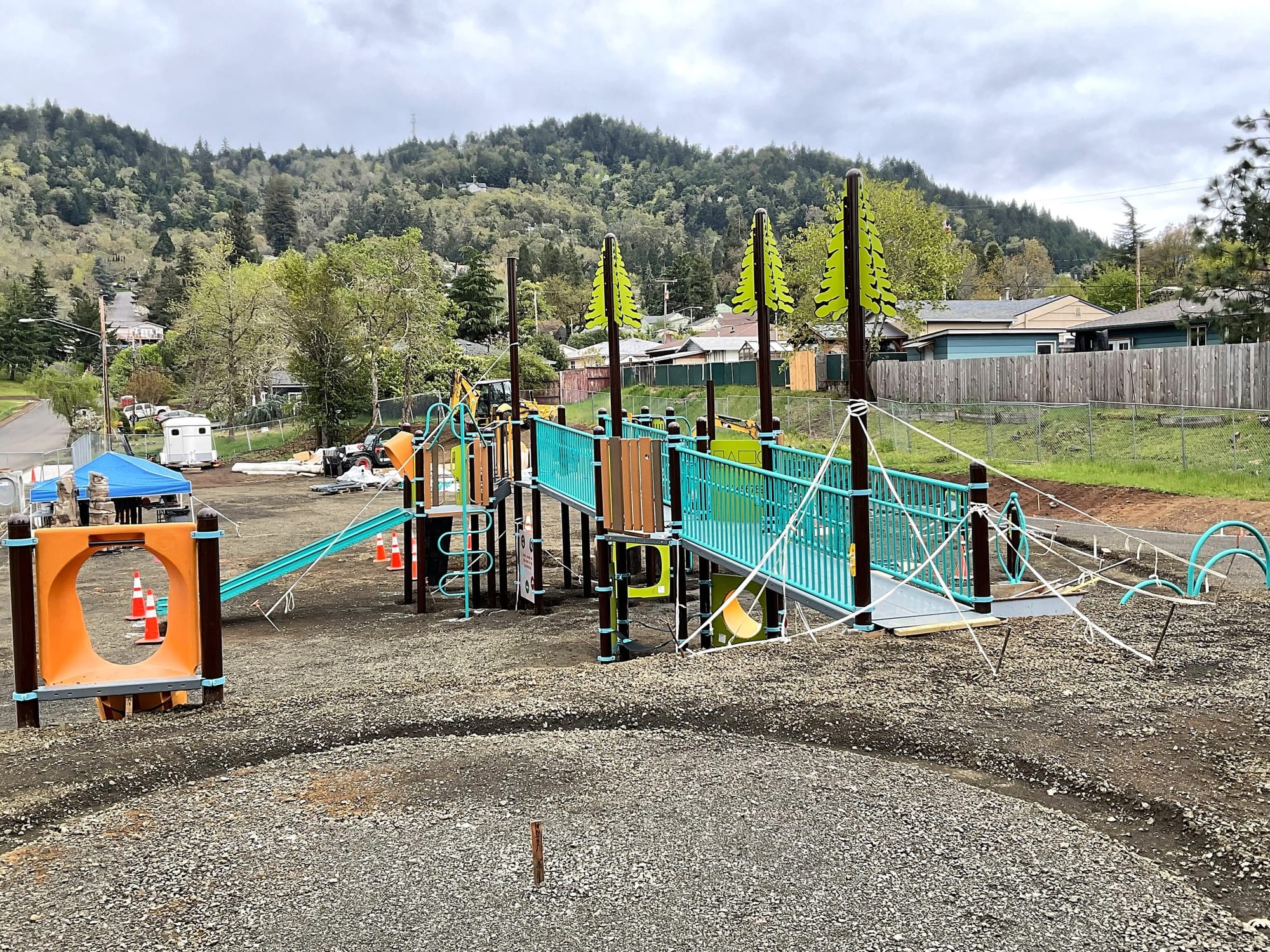 Much of the construction and site work is being handled by Roseburg Parks and Public Works staff, whose labor will make up a large share of the city’s required grant match. City crews are helping oversee design work, install infrastructure and remove the park’s old equipment as the new play area comes together.