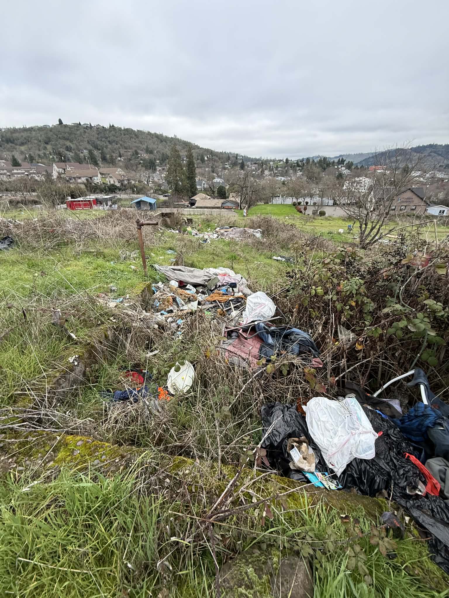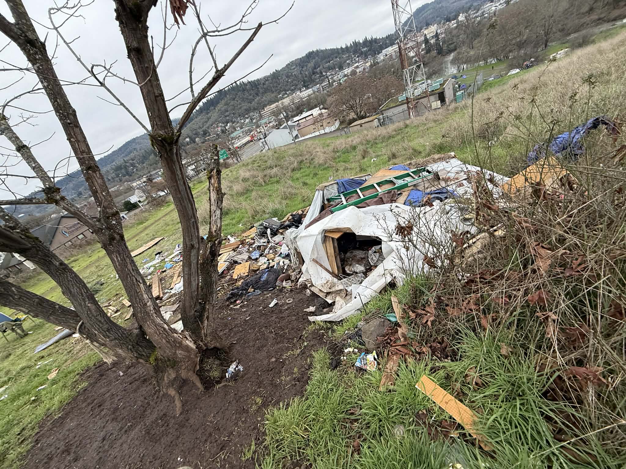 According to Daly, the debris and camping activity referenced by the city originated from an encampment near Deer Creek Park, located below her property. She says the activity migrated upward and onto areas adjacent to her land without her permission or involvement.