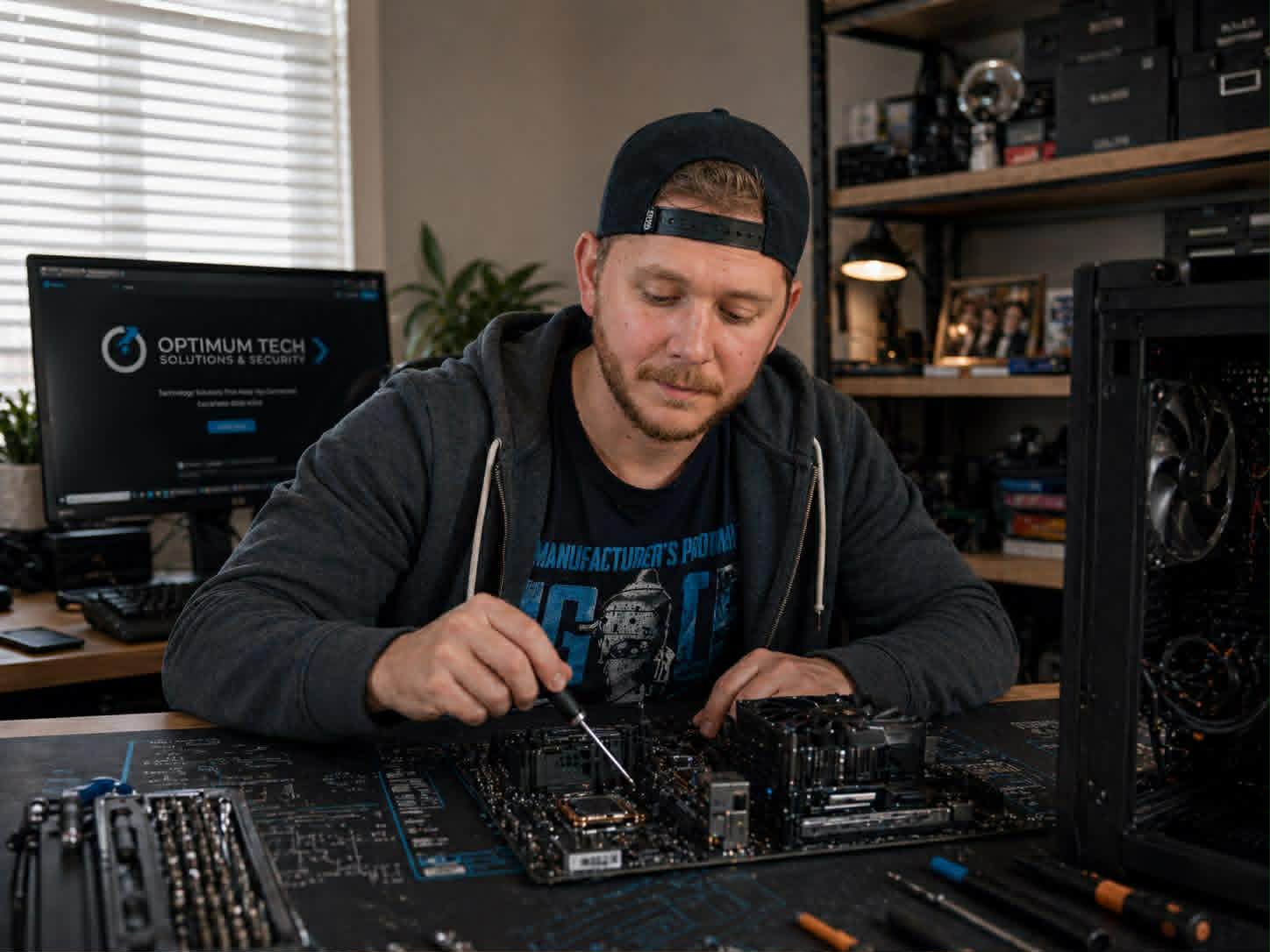 "Optimum Tech - Technology Optimization & Calibration", officially launched in April 2026. The business is focused on helping people with home and office technology, from Wi-Fi and computers to TVs, audio systems, printers, streaming devices, and general tech support.