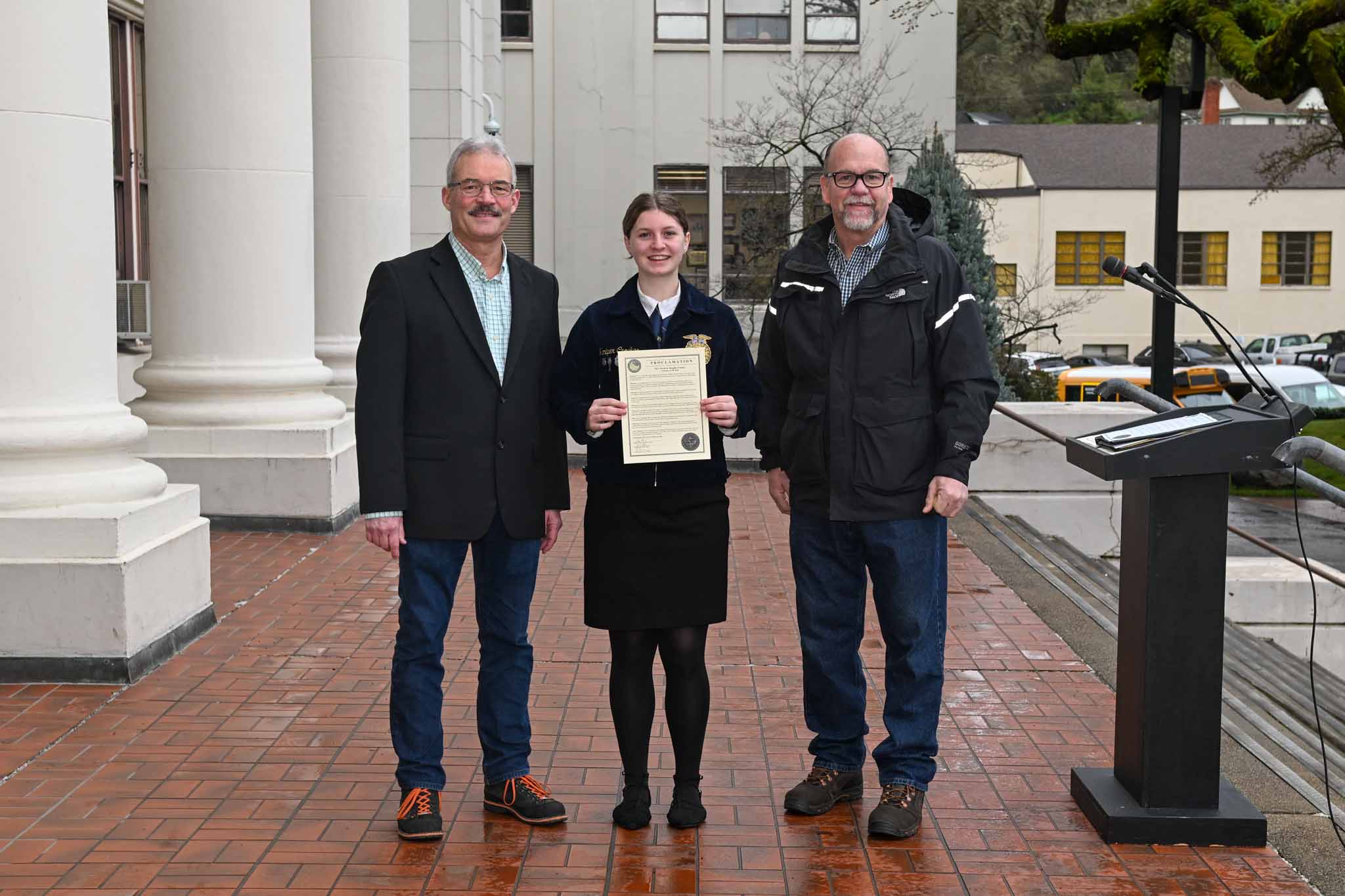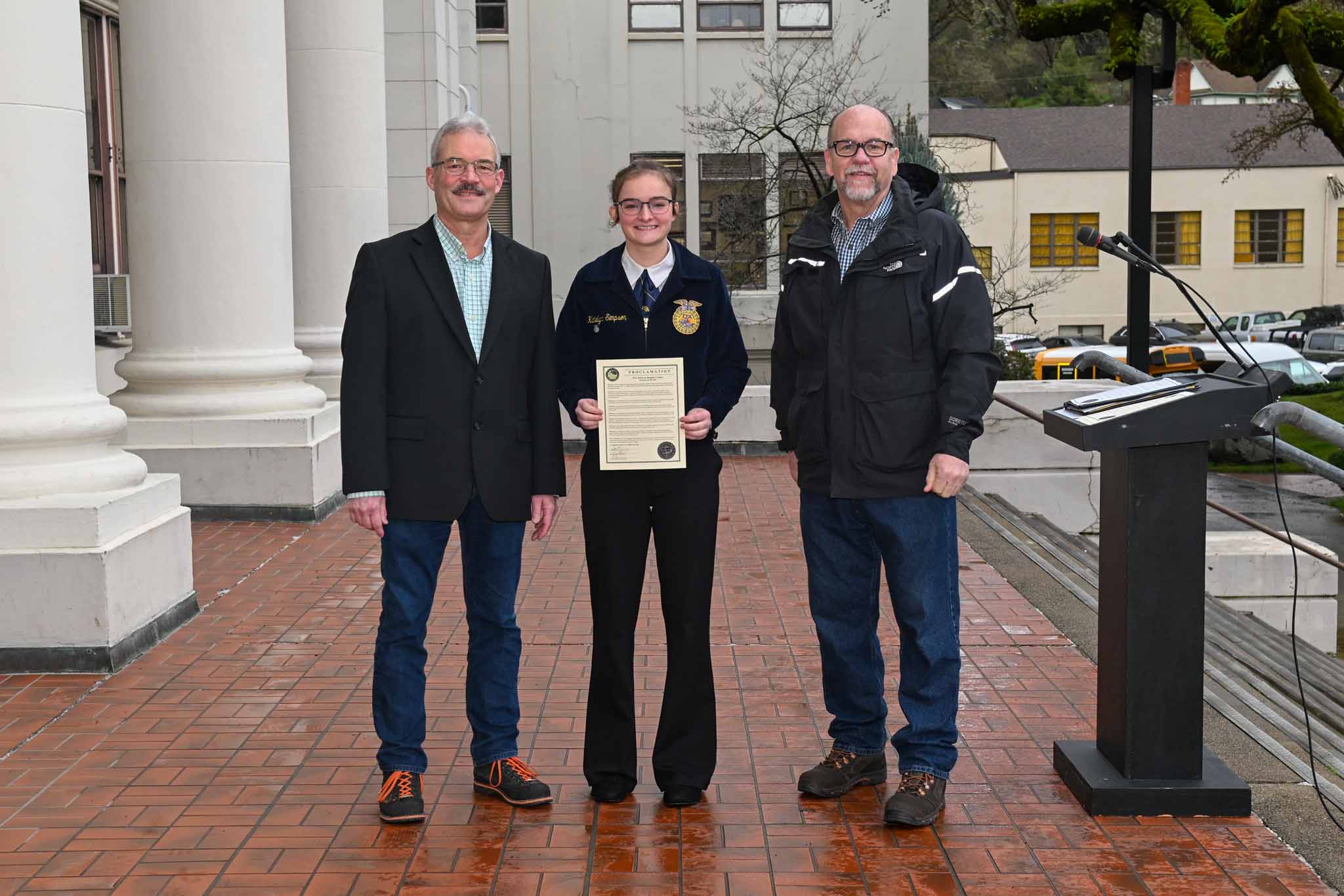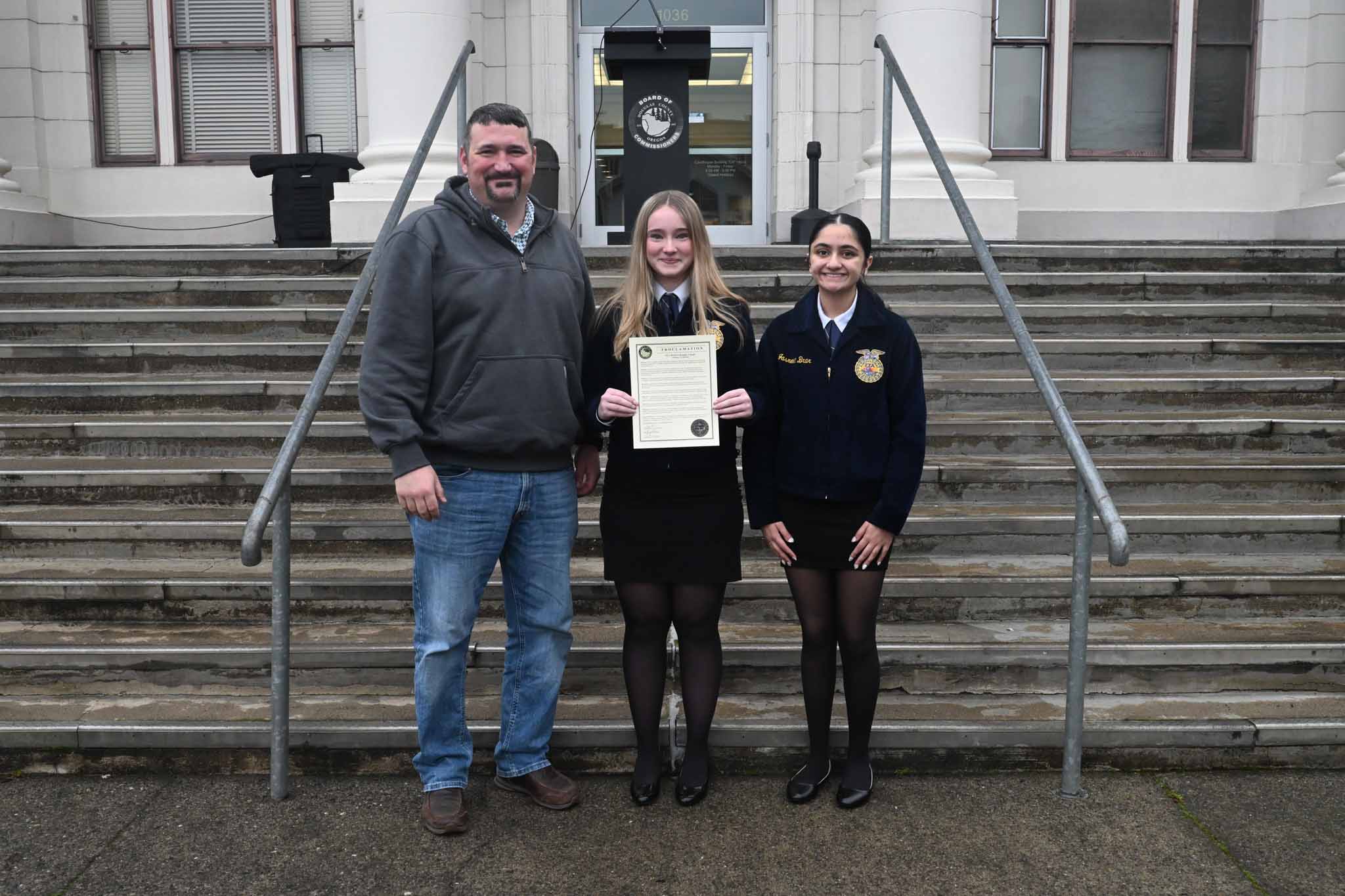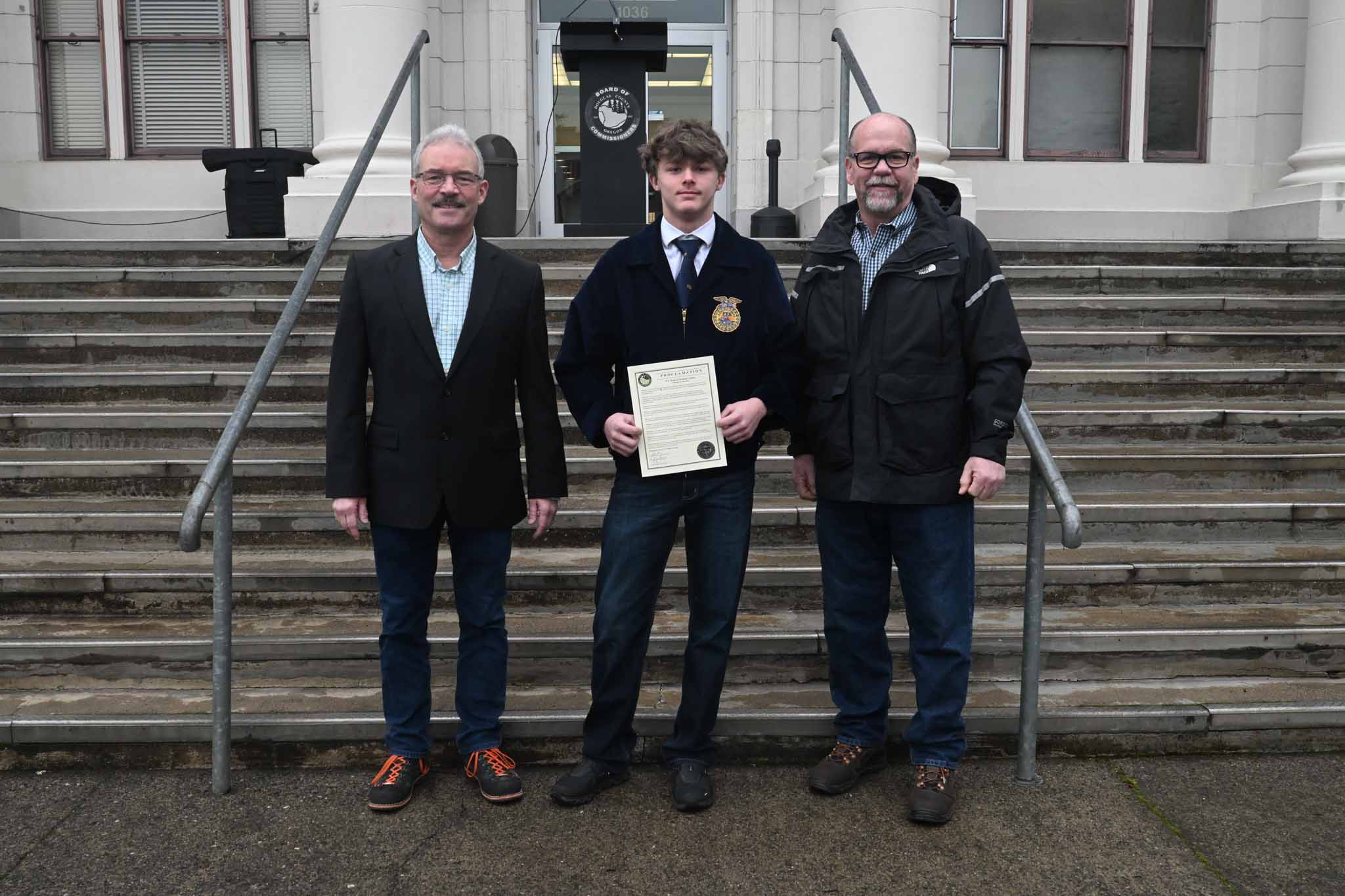 Wes Crawford, Sutherlin FFA chapter advisor and Umpqua District advisor for Douglas and Coos counties, thanked commissioners for ongoing involvement beyond proclamation day.