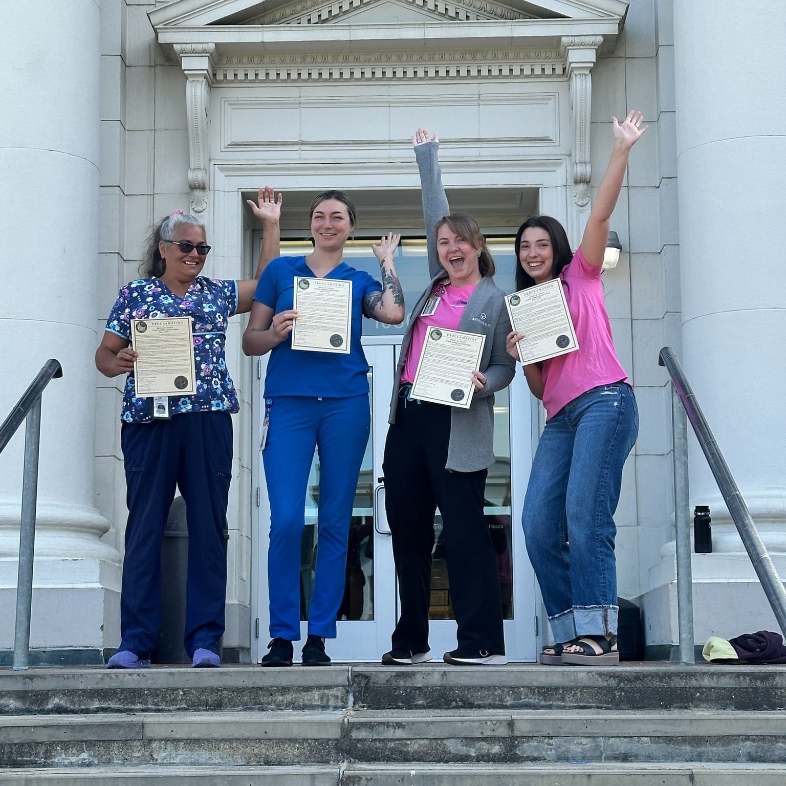 A group of Aviva Health nurses, accompanied by a cheering squad of supporters, visited the Douglas County Government Building to celebrate the proclamation and the vital role nurses play in the community.