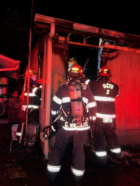 Manufactured home heavily damaged in Tuesday evening fire off Brosi Orchard Road in Winston. (Photos courtesy of Central Douglas Fire & Rescue)