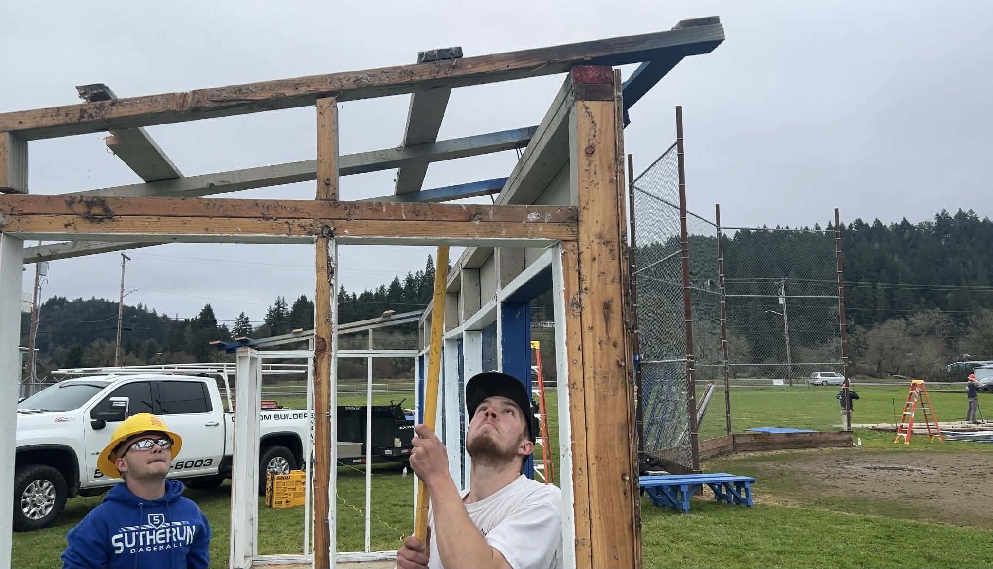 A dugout rebuild at Lauren Young Field in Sutherlin is serving as both a facility improvement project and a hands-on training opportunity for students interested in skilled trades.