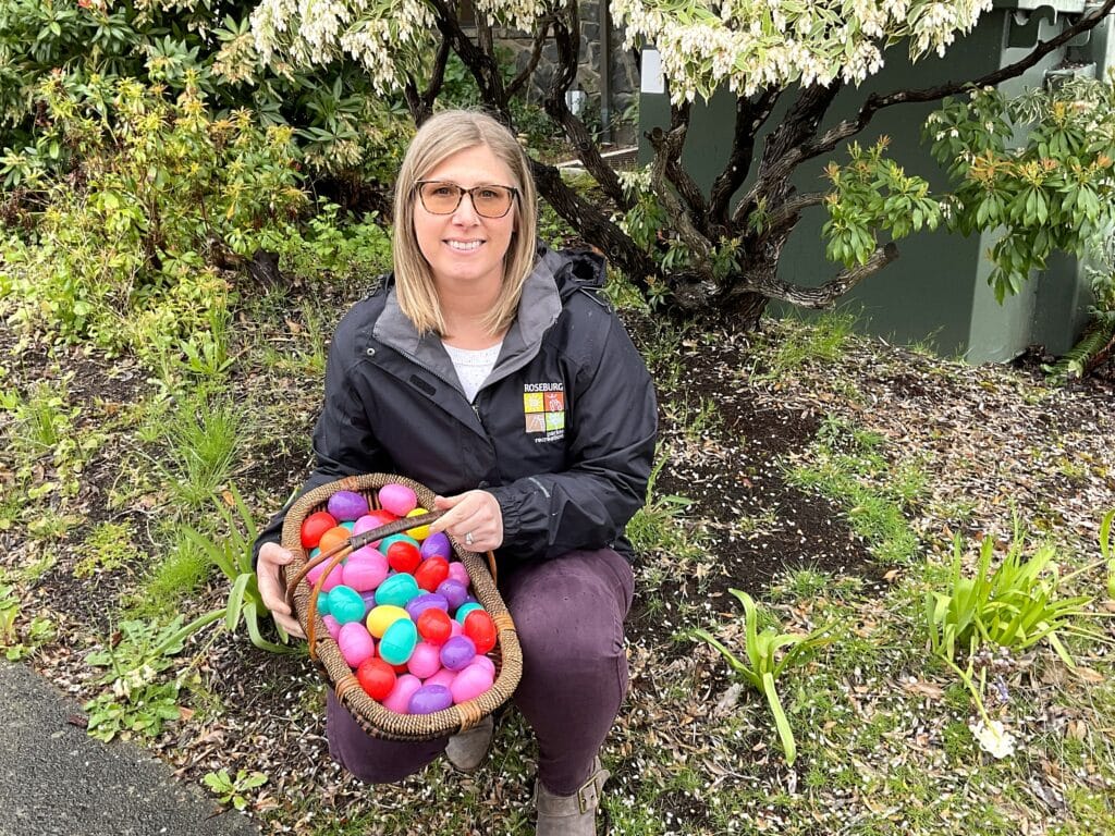 Kids will be challenged to collect one egg of each color to exchange for a prize or candy provided by Roseburg Parks, Roseburg Fire, Roseburg Public Library, and local community partners such as the Boys & Girls Club of the Umpqua Valley, Cascade Community Credit Union, Umpqua Health Alliance and the YMCA.