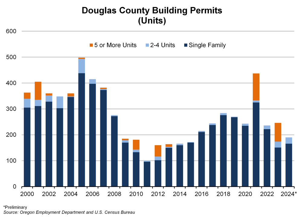 Building permit data from the U.S. Census Bureau shows that new housing construction in Douglas County as measured by permits for living units dropped in 2024.