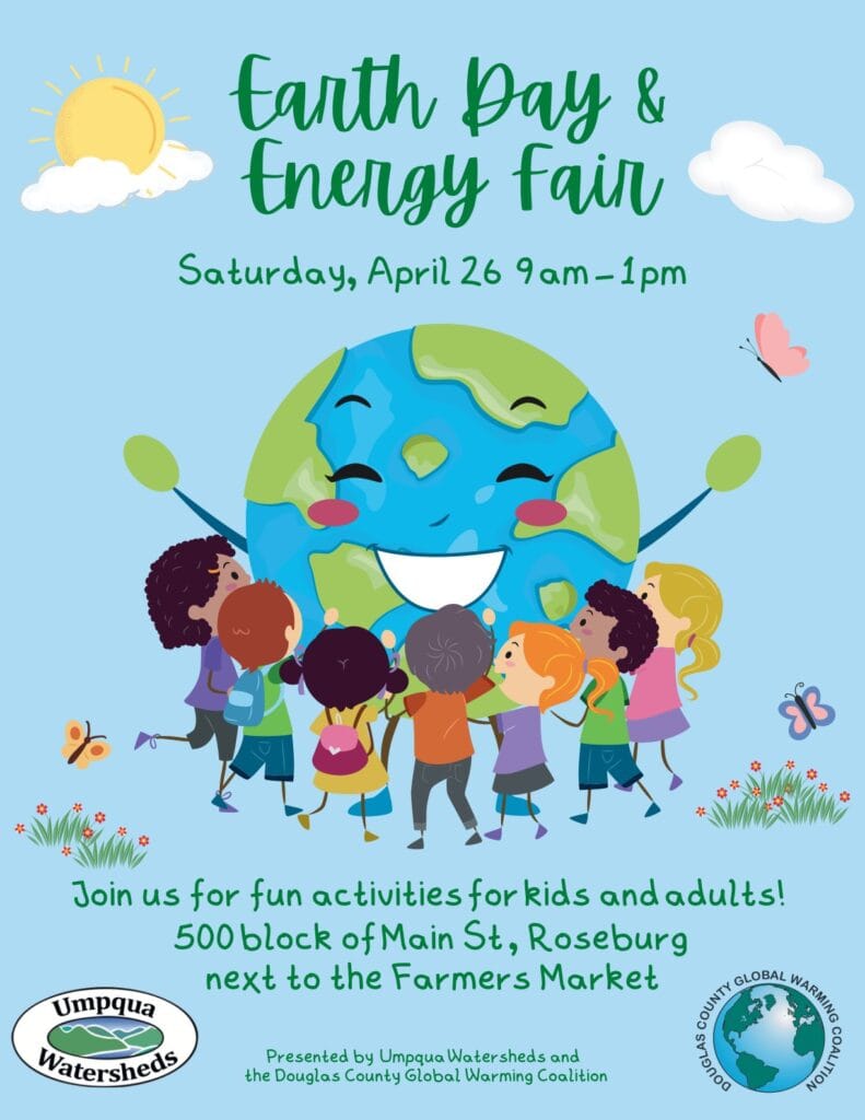 Presented by Umpqua Watersheds and the Earth Day & Energy Fair, the event will explore ways to take action to create a sustainable world. Attendees can learn about electric vehicles, and e-bikes, and visit interactive booths from local partners organizations that will share information about how people can be a good steward of the earth.