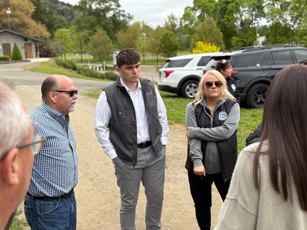 The release said the day began with a briefing at the Douglas County Emergency Management building in Roseburg, before traveling to Myrtle Creek for a meeting with City Administrator Lonnie Rainville, County Public Works Director Scott Adams and Glide Revitalization Recovery Lead Kendall Melvin. Local officials discussed current recovery priorities and conducted site visits to observe ongoing challenges.