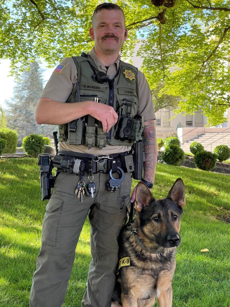 O’Dell said on the night of April 12, 2022, Ozzy’s alertness and skill may very well have saved Deputy Barden’s life. While assisting the Roseburg Police Department with clearing a business following a break-in, Ozzy detected a suspect hiding behind a desk on the second floor. Despite multiple warnings, the suspect remained hidden. O’Dell said thanks to Ozzy’s alertness, the suspect, armed with a loaded AR-15 style rifle, was taken into custody without incident. The suspect later admitted he planned to shoot whoever tried to come after him but surrendered out of fear of being bitten by Ozzy. O’Dell said the incident stands as a powerful reminder of the risks that deputies and K9’s face and the extraordinary bond and teamwork that keeps them safe.