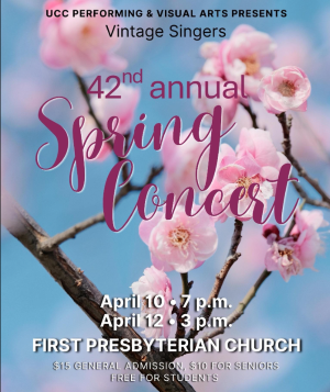 Umpqua Community College Performing and Visual Arts presents the Vintage Singers 42nd annual Spring Concert this Friday evening at 7:00 p.m. and Sunday afternoon at 3:00 p.m. It will take place at First Presbyterian Church on Southeast Lane Avenue in downtown Roseburg.