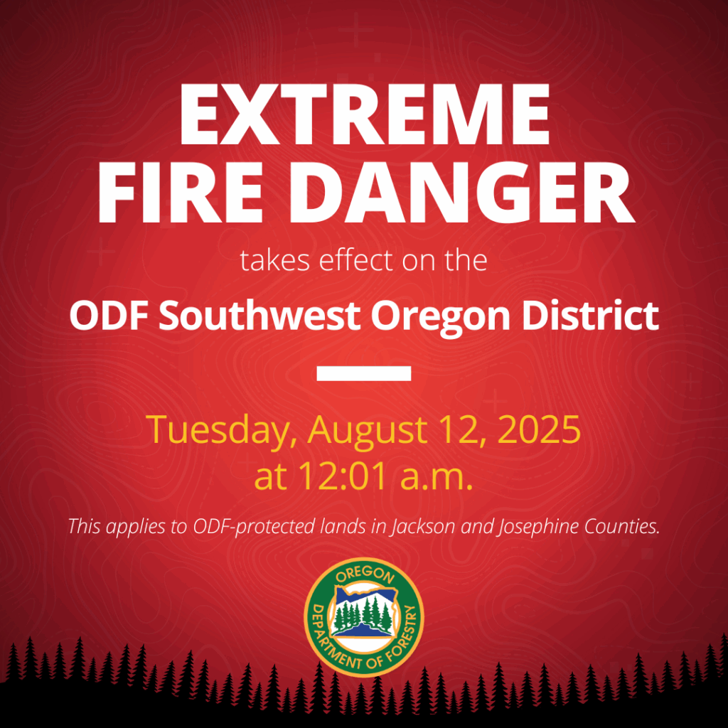 FIRE DANGER LEVEL INCREASES TO EXTREME IN JACKSON AND JOSEPHINE COUNTIES