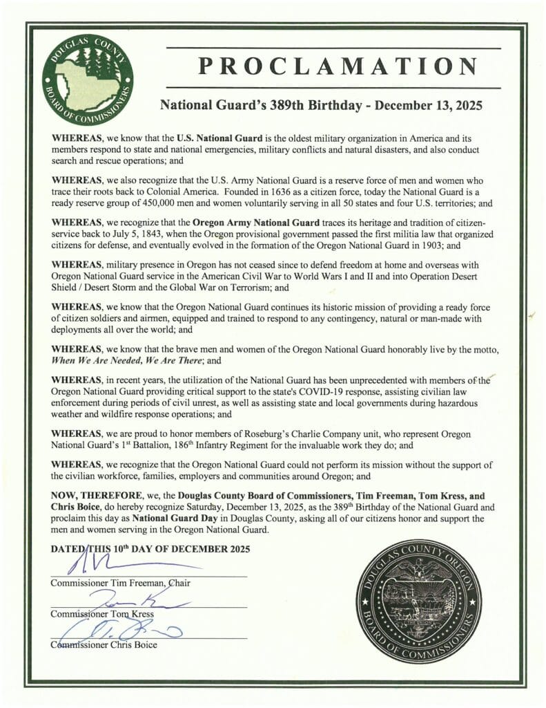 Good morning Douglas County! Here are today's updates live from the Roseburg Receiver Communications Center.