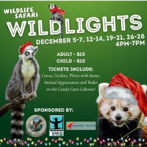 Wildlife Safari’s holiday events continue through December 28th.