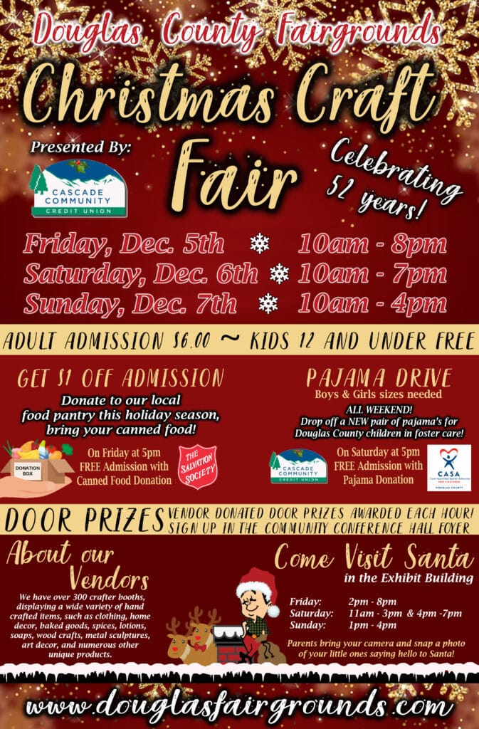 For more information on the Christmas Craft Fair, go to: https://douglasfairgrounds.com/christmas.html