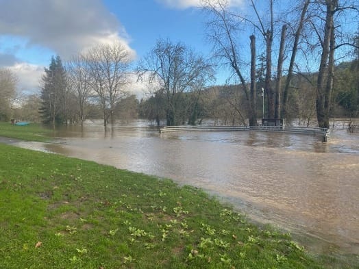 The gauge for the river at Roseburg is under maintenance and not reporting data. Tamara Howell of the Douglas County Commissioners Office said that gauge is antiquated, and the county is awaiting new modern replacement equipment, which is currently on back order.
