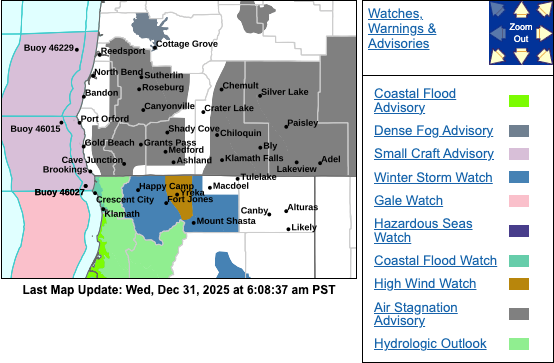 The Advisory area includes valley locations west of the Cascades in Douglas, Josephine and Jackson counties and east of the Cascades in Klamath and Lake counties.