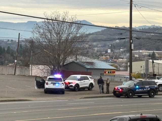 As police from five law enforcement agencies descended onto the area, many businesses on Stephens Street locked their doors, with some keeping employees and customers inside. A “shelter in place” advisory went out to some people nearby. Northeast Stephens was closed at the intersection with Northeast Winchester Street for over two hours, snarling traffic in the area, and causing impacts on several other streets in Roseburg.