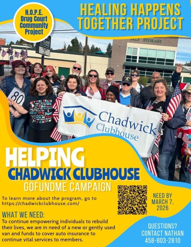 H.O.P.E. Drug Court program participant Nate Sessions is turning recovery into action by organizing a community fundraising effort to support Chadwick Clubhouse, a local organization dedicated to serving adults living with mental illness. Recognizing the vital role transportation plays in access to services, the project aims to help Chadwick Clubhouse replace its aging vans, which have over 300,000 miles and are no longer reliable.
