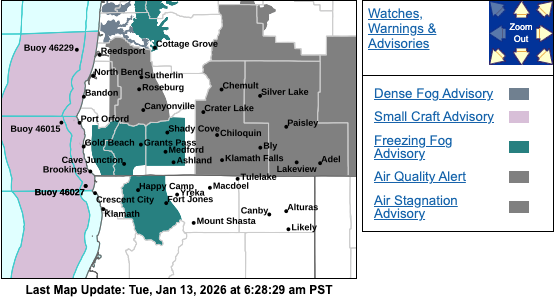 Forecasters at the National Weather Service in Medford said poor air quality conditions will continue. This is due to an inversion and stagnant air conditions near the surface that will continue to trap pollutants within the valleys.