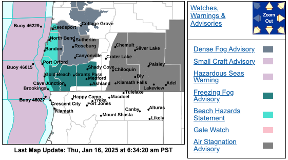 The Advisory area includes central Douglas County, Jackson and Josephine counties and eastern Curry County. It applies to the cities of Roseburg, Grants Pass, Medford and Cave Junction along with surrounding locations.