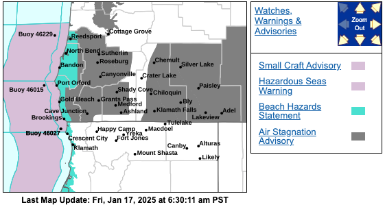 AIR STAGNATION ADVISORY FOR MUCH OF SOUTHERN OREGON
