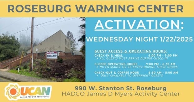 For updates on the Roseburg Warming Center, go to the UCAN Facebook page at: