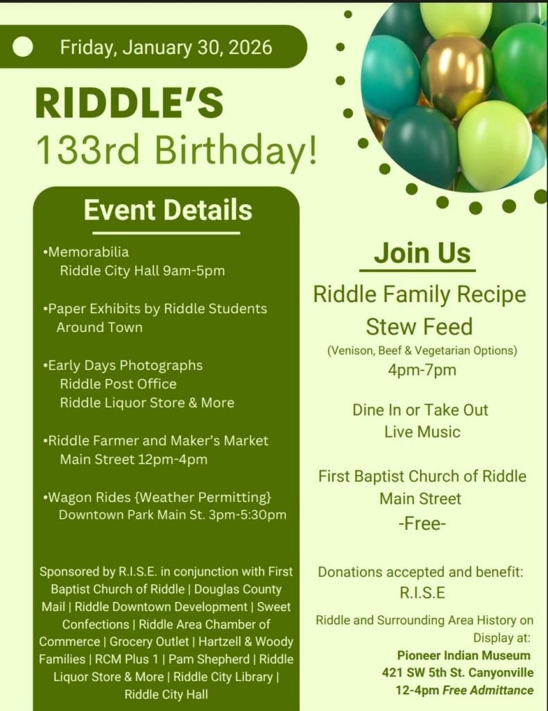 The City of Riddle is celebrating its 133rd birthday this Friday, January 30th.