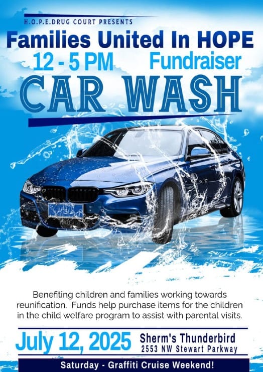 A benefit car wash will be held on Saturday from 12:00 p.m. to 5:00 p.m. at Sherm’s Thunderbird on Northwest Stewart Parkway.