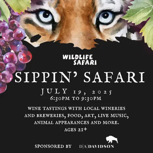 Wildlife Safari will have its “Sippin’ Safari” on Saturday, July 19th.