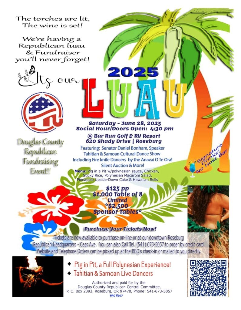 The Douglas County Republican Central Committee will have its 2025 Luau on Saturday, June 28th.