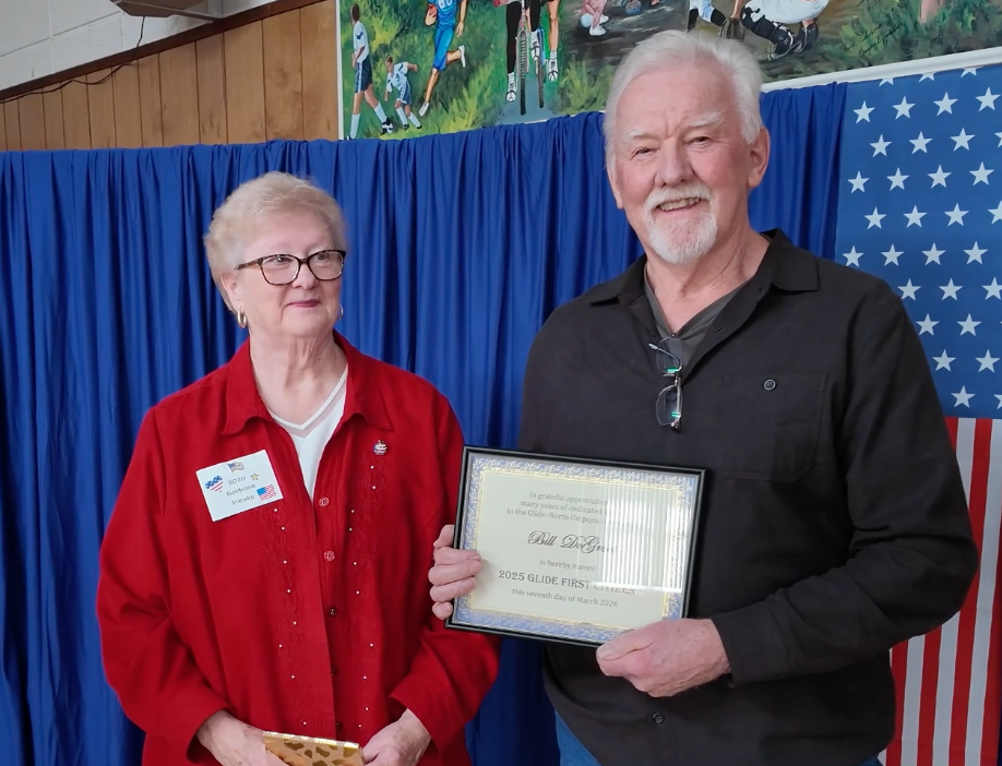 GLIDE, Ore. — The Glide community gathered Saturday at the Glide Community Center to honor its 2025 First Citizens, Bill DeGroot and Kara Weber, during the annual Glide First Citizens luncheon, a longstanding tradition that has recognized local service and community involvement since 1960.