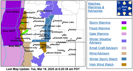 A Winter Storm Watch remains in effect from Wednesday afternoon through Friday evening for mountain areas in parts of southern Oregon.