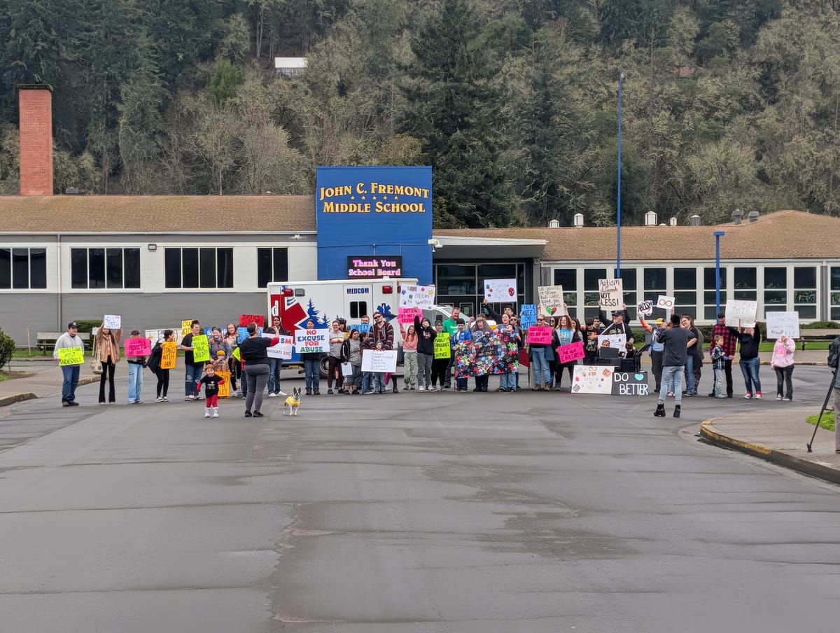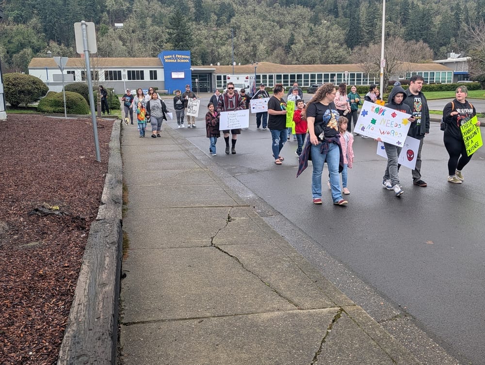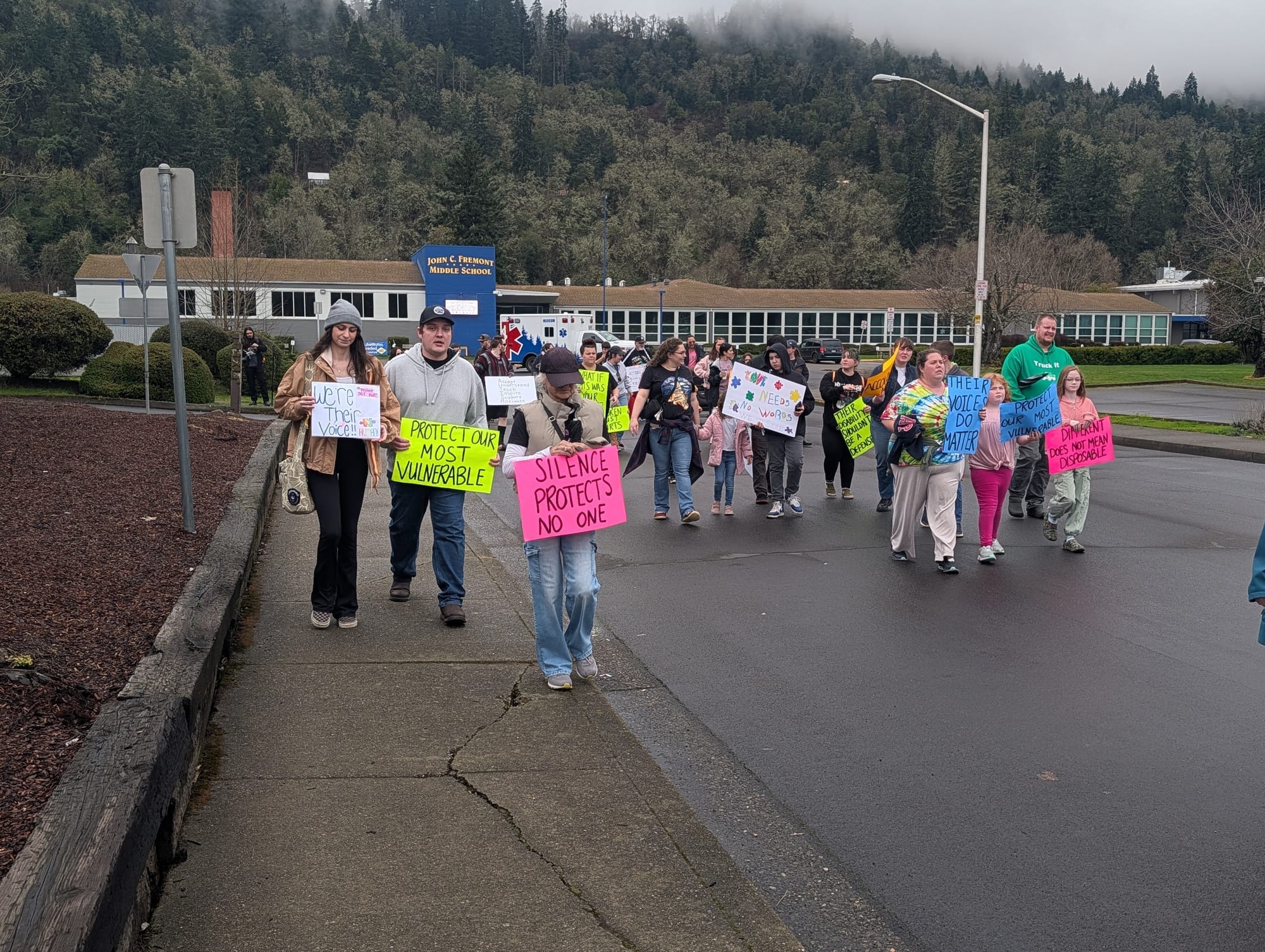 Organizers said the walk was planned in response to injuries reported among students in the school’s Developmental Learning Center. More than 50 people took part, walking from Fir Grove Park to Fremont Middle School.