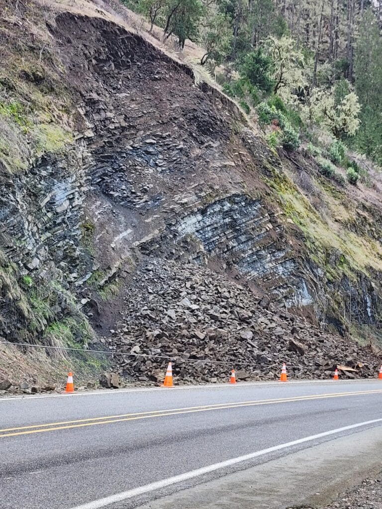 The Douglas County Public Works Department is following up on Sunday night’s minor rockslide northwest of Roseburg.