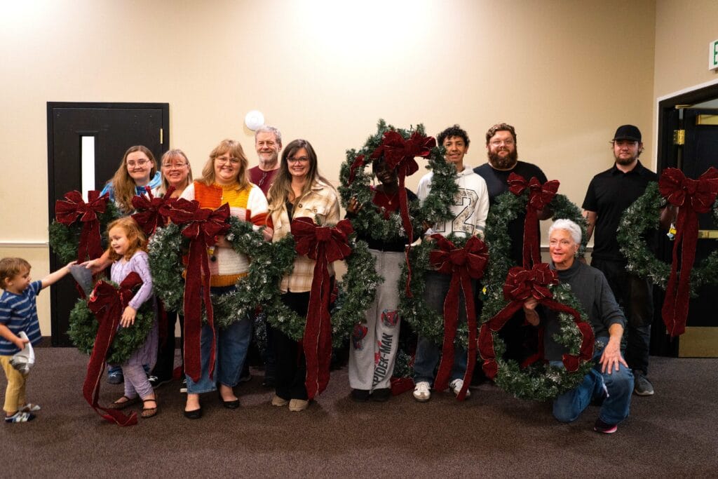 On Sunday, City Councilor Zack Weiss, in partnership with an emerging nonprofit, Destination Downtown Roseburg, installed about 30 holiday wreaths throughout downtown. Weiss and members of Garden Valley Church restrung the wreaths.