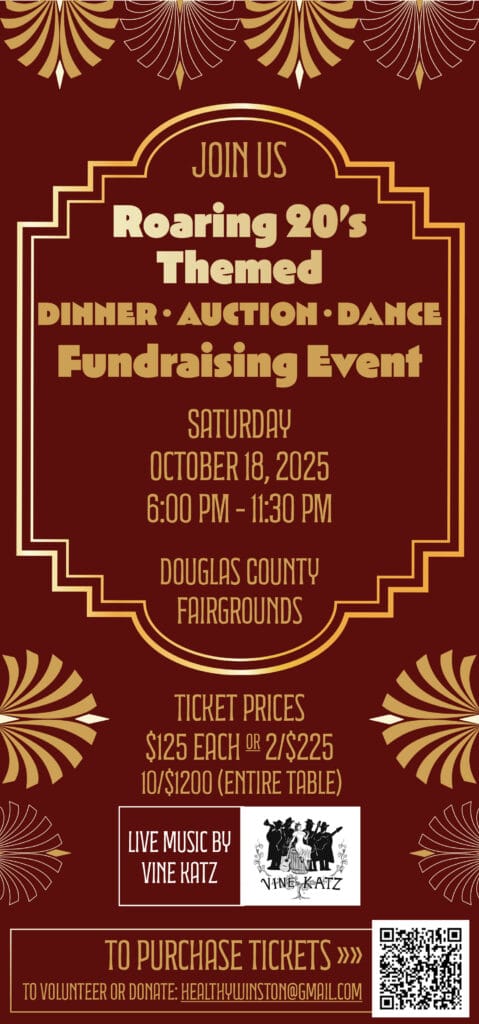 The evening will feature a Roaring 20’s theme with a dinner, dancing and auctions planned. Live music will be provided by Vine Katz. Anyone who shows up in costume will be entered into a drawing for best costume.