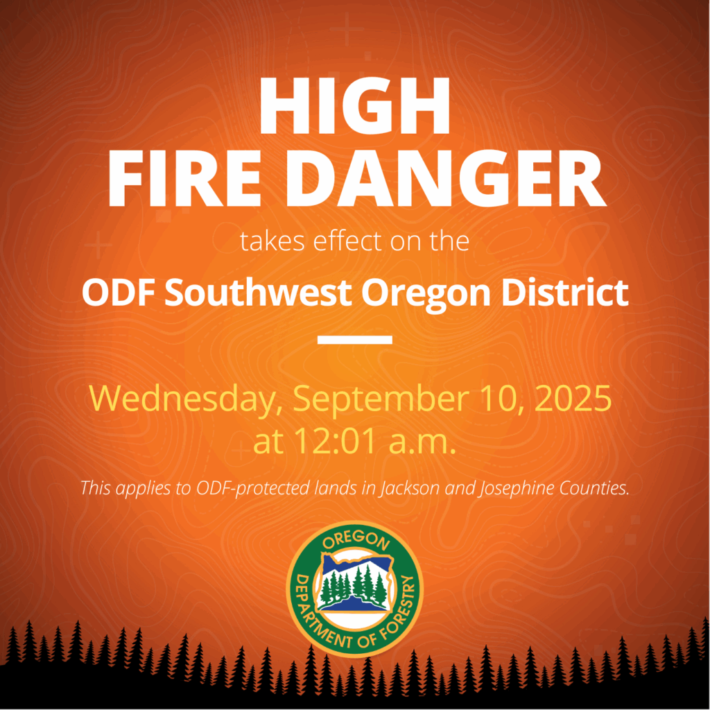 Due to cooler temperatures and light rain, the fire danger on lands protected by the Oregon Department of Forestry Southwest Oregon District has decreased to “high”.