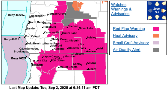 Forecasters at the National Weather Service in Medford told News Radio 93-9 FM and 1240 KQEN that highs should be in the low to mid 90’s. That’s well above the normal high of 84 degrees for this week in September. The actual high temperature may be impacted by the influence of smoke from nearby wildland fires.