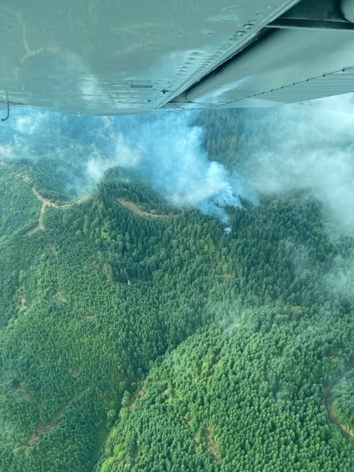 DFPA and Coos Forest Protective Association crews are engaged on two lightning-struck trees in a remote area about 7 miles southwest of Elkton. Aerial reconnaissance was used to monitor fires until weather conditions required grounding. For safety reasons, DFPA’s air attack has been grounded until the weather permits.