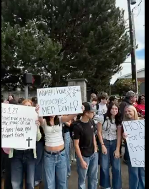 What began as a local demonstration during eighth period, with students leaving class to protest a transgender student’s access to the girls’ locker room, has now been featured by outlets such as Not The Bee, Libs of TikTok, and several high-profile social media accounts with hundreds of thousands of followers.
