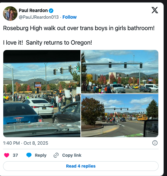 The coverage has also prompted national political commentary. Prominent online figures shared posts applauding the walkout as a sign of “sanity returning to Oregon,” while others condemned the event as an example of transphobia in schools.