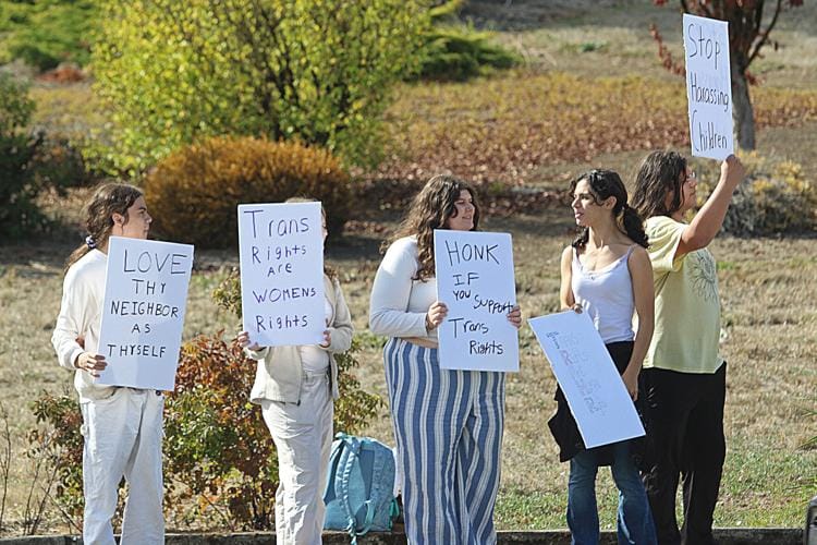 “The display of transphobia and bullying against children in our community is unacceptable,” said senior Donovan Loy-Steiner, who attended to support his transgender friends.