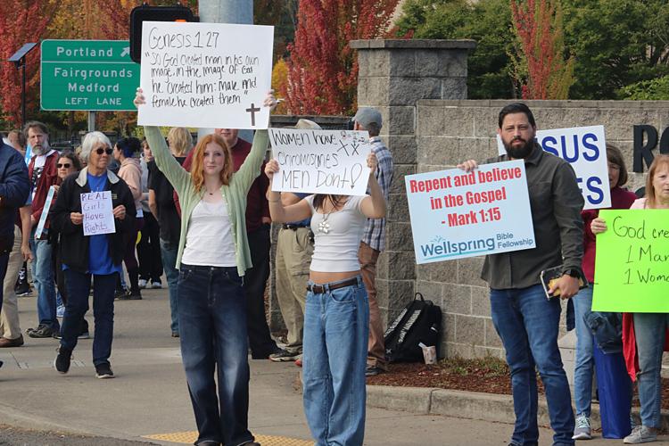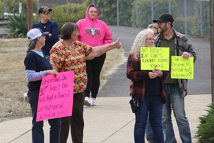 Students at Roseburg High walked out Wednesday during eighth period to protest transgender students using locker rooms matching their gender identity. Counter-protesters also attended, calling the demonstration transphobic. Oregon law allows students to use facilities by gender identity.