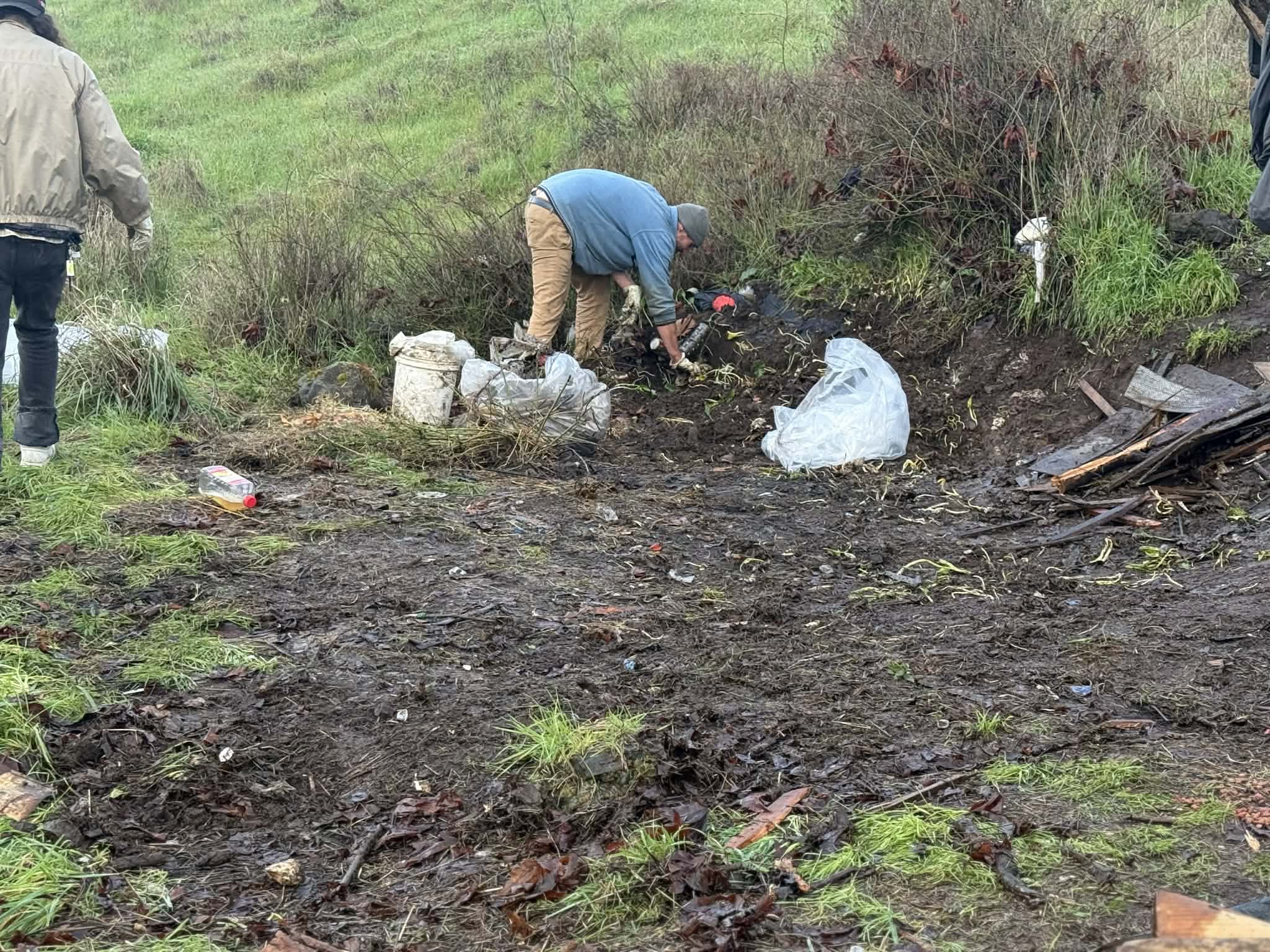 He said one section of the hillside contained debris deep enough to completely bury a cast-iron bathtub. Other areas included remnants of a former structure known locally as the “haunted house,” which Woodard said was destroyed years ago, reportedly after fires originating from camps below the hillside spread upward.