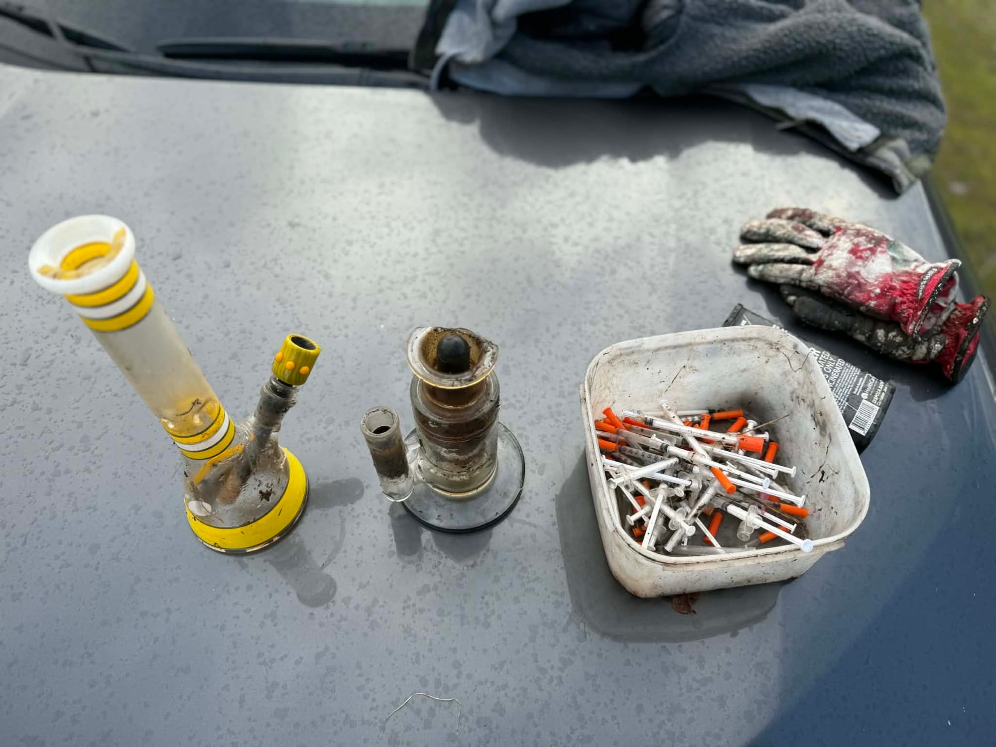 According to Woodard, cleanup crews removed large quantities of trash, including needles, syringes, bottles, tents, pallets, and other debris, some of it piled several feet deep in places.