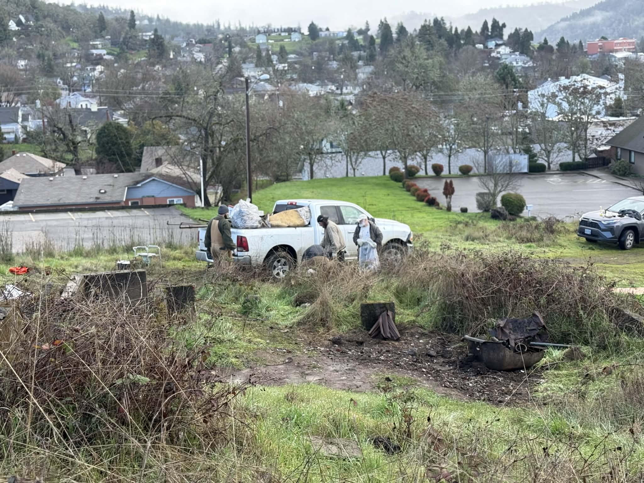 A Roseburg hillside property was largely cleaned up this weekend (Jan 2 - 4) through a coordinated effort by local volunteers, residents of managed camps, and Elk Island Trading LLC following a nuisance notice issued to the homeowner.